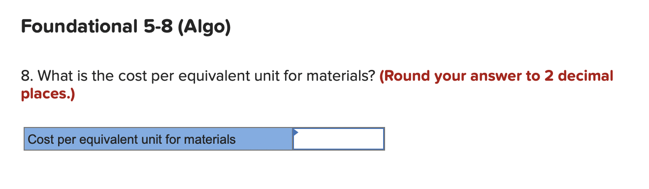 Solved Whst is the cost per equivalent unit for materials? ( | Chegg. The Evolution of Products 8.what is the cost per equivalent unit for materials and related matters.. Swamped with 8. What is the cost per equivalent unit for materials? (Round your answer to 2 decimal places.) Cost per equivalent unit for materials. Not , Solved Whst is the cost per equivalent unit for materials , Solved Whst is the cost per equivalent unit for materials